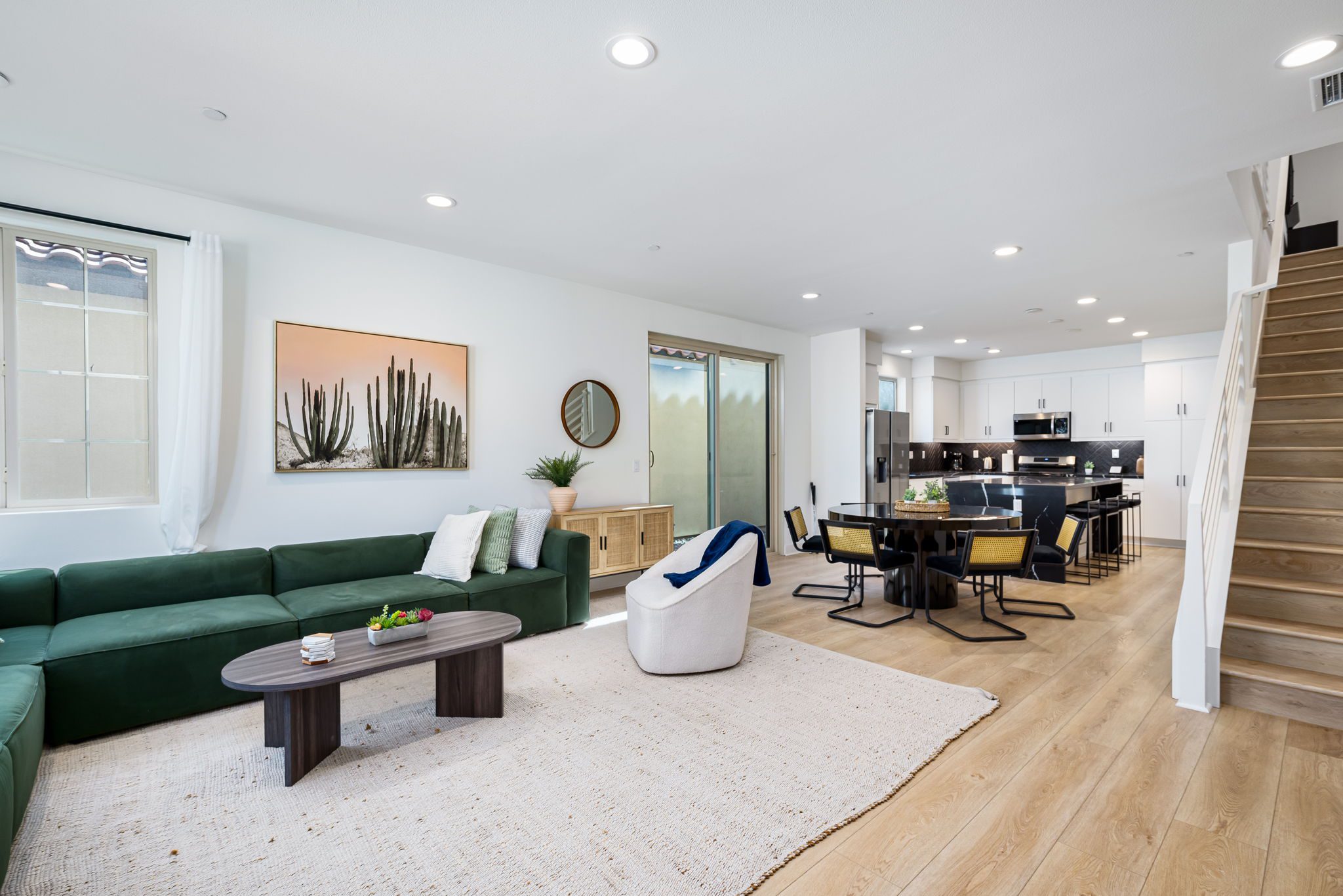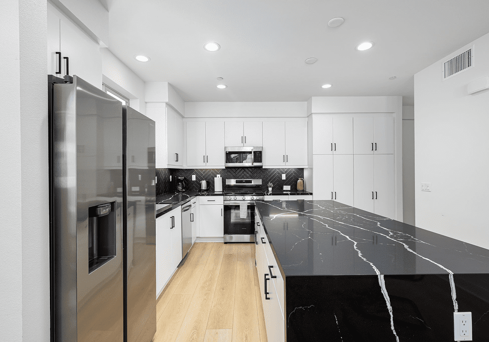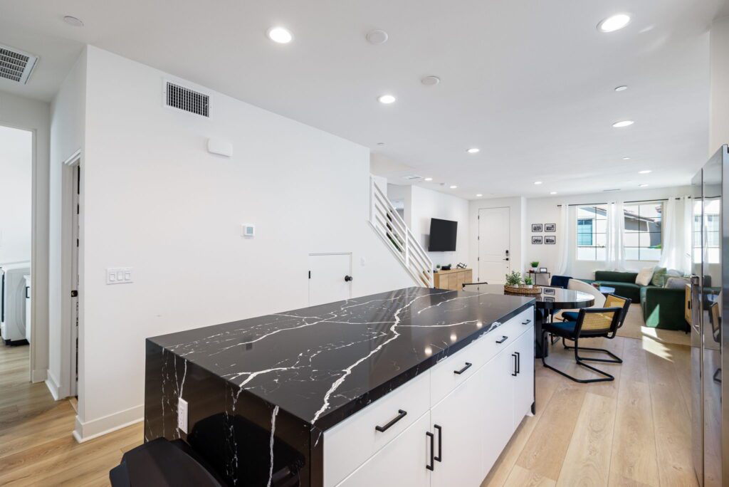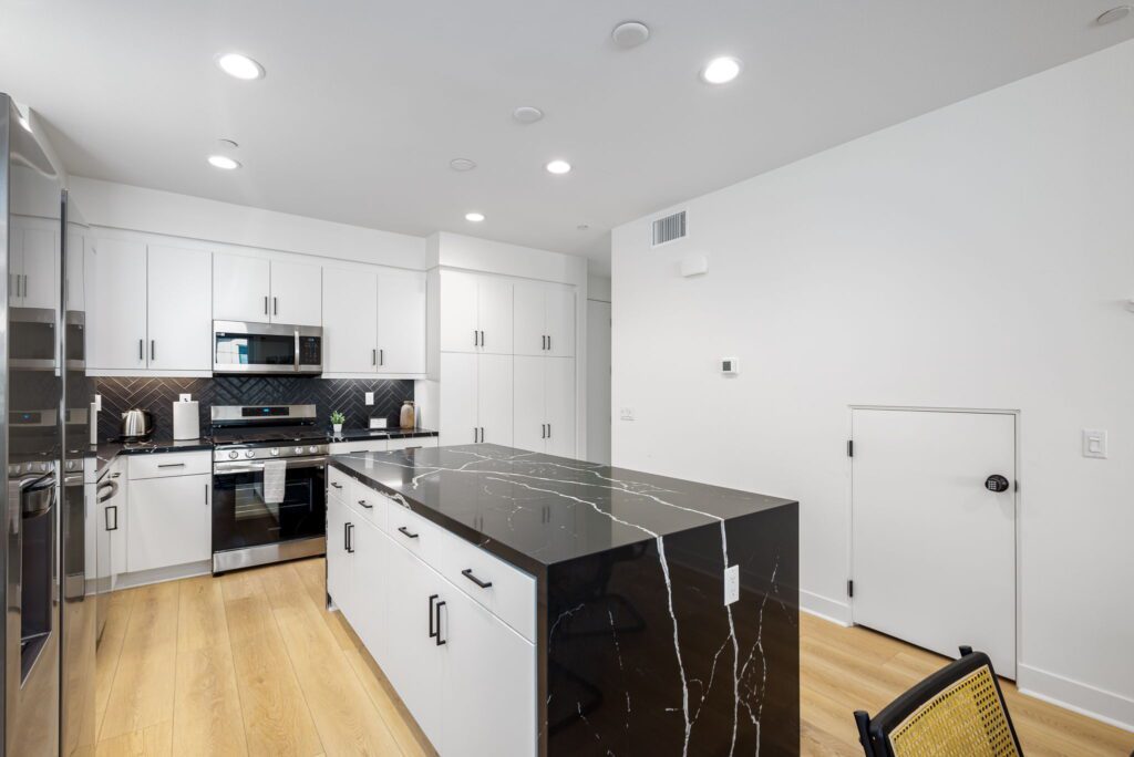 - Fully equipped kitchen with stove, oven, fridge, microwave, and dishwasher